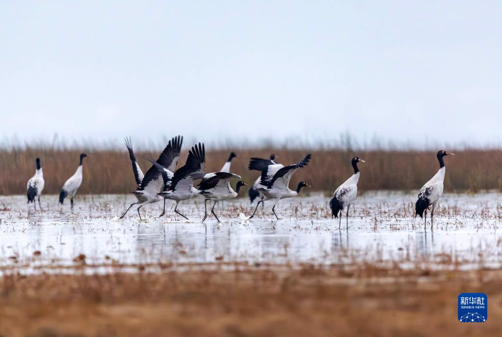 入冬以來,貴州省威寧彝族回族苗族自治縣草海國家級自然保護區陸續迎來越冬黑頸鶴。據草海國家級自然保護區管理委員會最新監測數據顯示,截至11月18日,越冬黑頸鶴數量已超1500只。