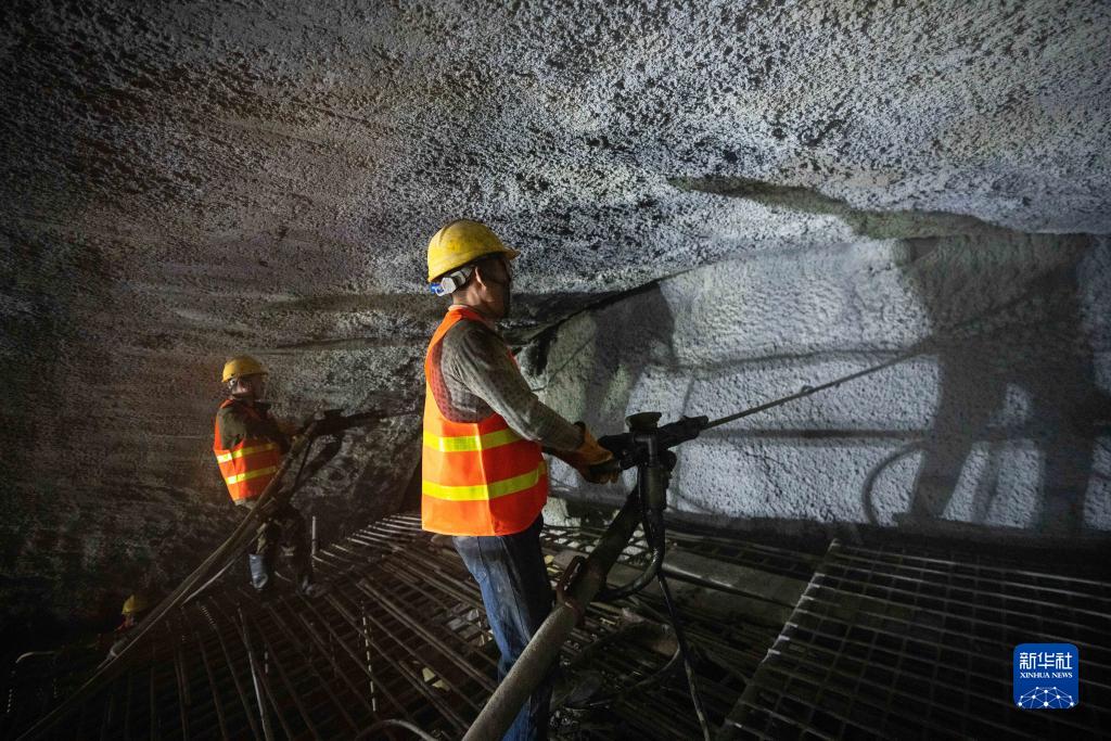11月19日,中鐵五局施工人員在桑龍高速金家坡二號隧道內施工。