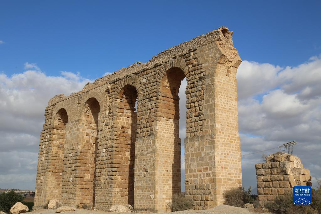 這是11月18日拍攝的位于突尼斯本阿魯斯省的宰格萬渡槽遺跡。