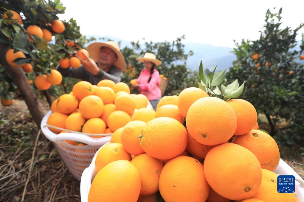連日來,貴州省黔東南苗族侗族自治州榕江縣2.6萬畝臍橙進入采摘季,員工忙著采摘、打包、搬運臍橙,果園一派忙碌景象。