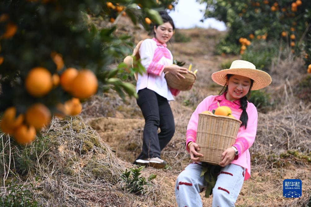 連日來,貴州省黔東南苗族侗族自治州榕江縣2.6萬畝臍橙進入采摘季,員工忙著采摘、打包、搬運臍橙,果園一派忙碌景象。