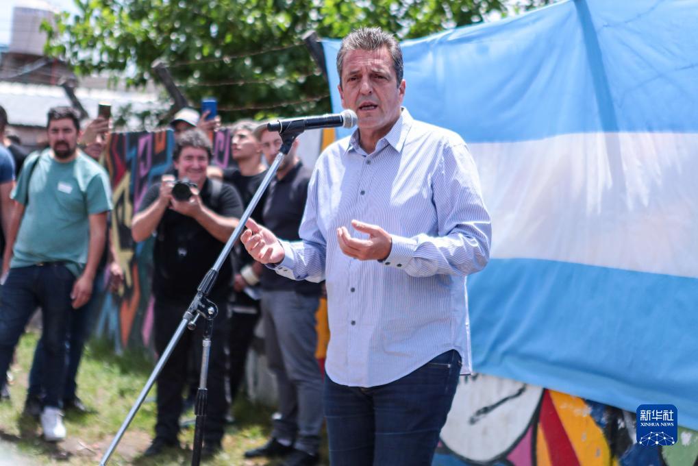 11月19日,阿根廷中左翼執政聯盟祖國聯盟候選人馬薩在阿根廷布宜諾斯艾利斯省蒂格雷市的一處投票站投票后發表講話。