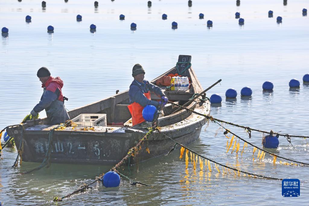 近期,在“海帶之都”山東省榮成市,海帶養殖區展開海帶“播種”作業,漁船在海面來往穿梭,一派忙碌景象。
