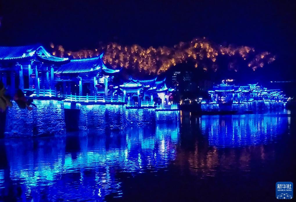 11月20日,廣東潮州廣濟橋舉行世界兒童日亮燈活動。