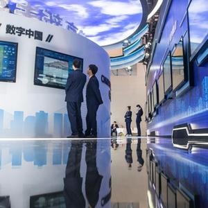 11月20日,在2023中國5G+工業互聯網大會創新成果展上,工作人員向參觀者介紹展品。