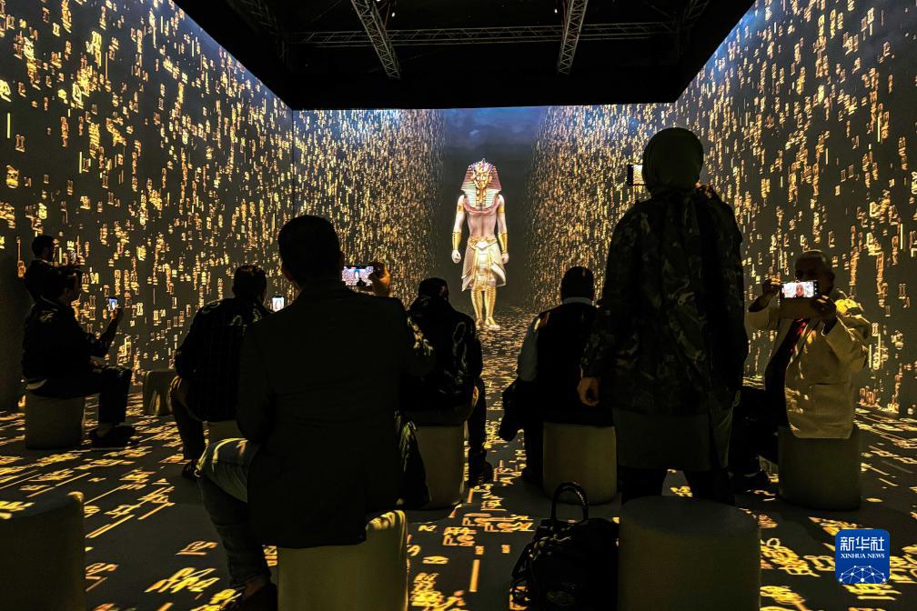 11月20日,人們在埃及吉薩的大埃及博物館參觀圖坦卡蒙沉浸式展覽。