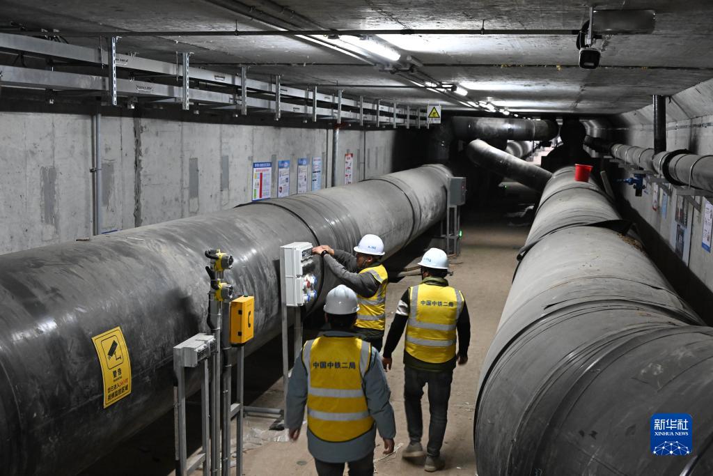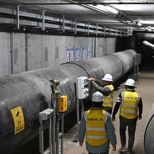 工作人員在青島市李滄區一段地下綜合管廊巡查(11月20日攝)。
