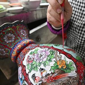 位于河北饒陽縣的饒陽億澤景泰藍工藝品廠前身是鄉辦企業官亭琺瑯廠,是河北省景泰藍生產工藝比較完整的制作廠家。經過多年的發展,該廠培育了一支技術精湛的專業隊伍,形成了集加工、制作、銷售為一體的生產銷售體系,出產的景泰藍主要銷往北京、天津、上海等十多個大城市,并通過文化公司銷往海外,年銷售額上千萬,帶動周邊40名村民就業增收,助力鄉村振興。