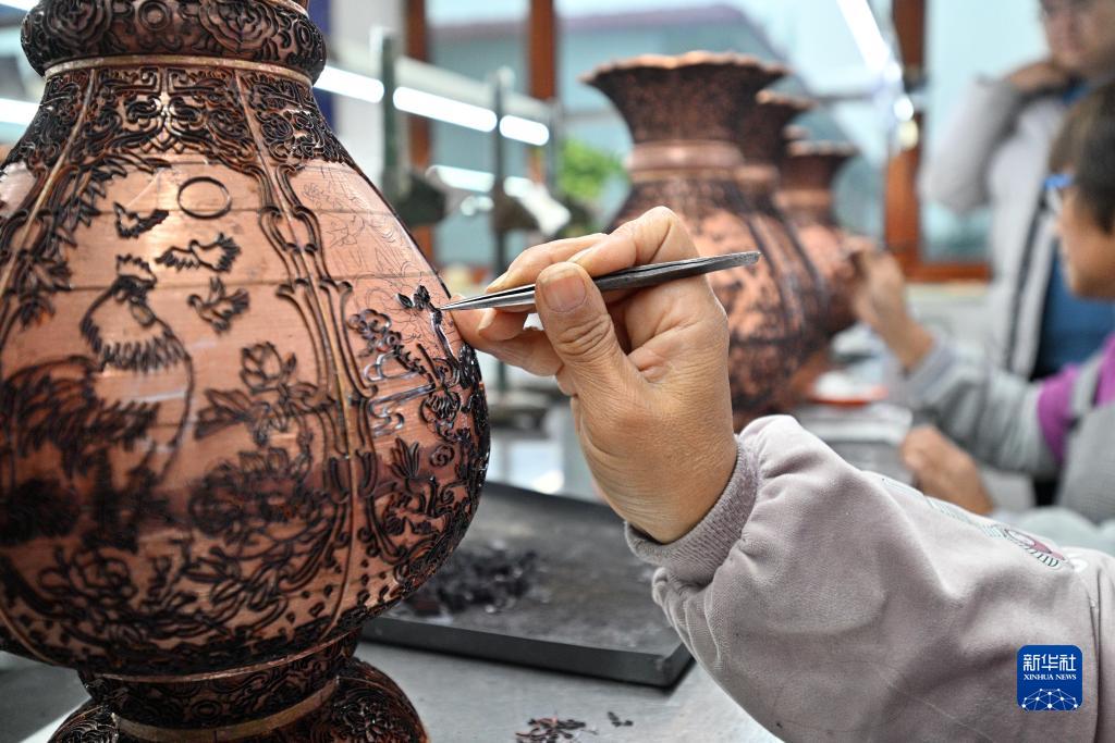 位于河北饒陽縣的饒陽億澤景泰藍工藝品廠前身是鄉辦企業官亭琺瑯廠,是河北省景泰藍生產工藝比較完整的制作廠家。經過多年的發展,該廠培育了一支技術精湛的專業隊伍,形成了集加工、制作、銷售為一體的生產銷售體系,出產的景泰藍主要銷往北京、天津、上海等十多個大城市,并通過文化公司銷往海外,年銷售額上千萬,帶動周邊40名村民就業增收,助力鄉村振興。