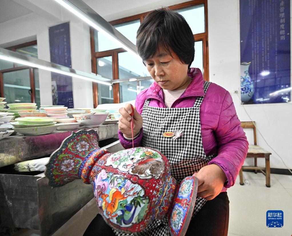 位于河北饒陽縣的饒陽億澤景泰藍工藝品廠前身是鄉辦企業官亭琺瑯廠,是河北省景泰藍生產工藝比較完整的制作廠家。經過多年的發展,該廠培育了一支技術精湛的專業隊伍,形成了集加工、制作、銷售為一體的生產銷售體系,出產的景泰藍主要銷往北京、天津、上海等十多個大城市,并通過文化公司銷往海外,年銷售額上千萬,帶動周邊40名村民就業增收,助力鄉村振興。