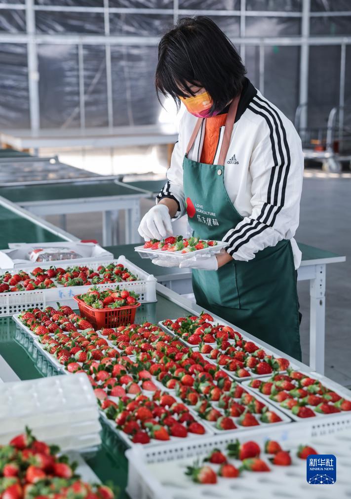 11月21日,草莓共富合作工坊的工作人員打包剛剛采摘的草莓。