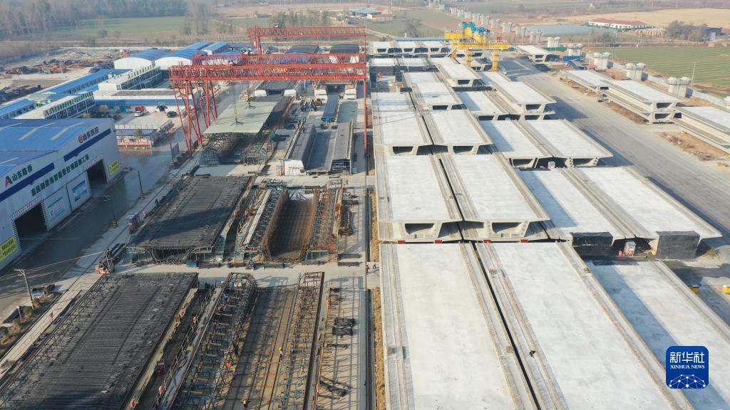 11月21日拍攝的濟濱高鐵山東路橋集團惠民制梁場箱梁加工現場(無人機照片)。