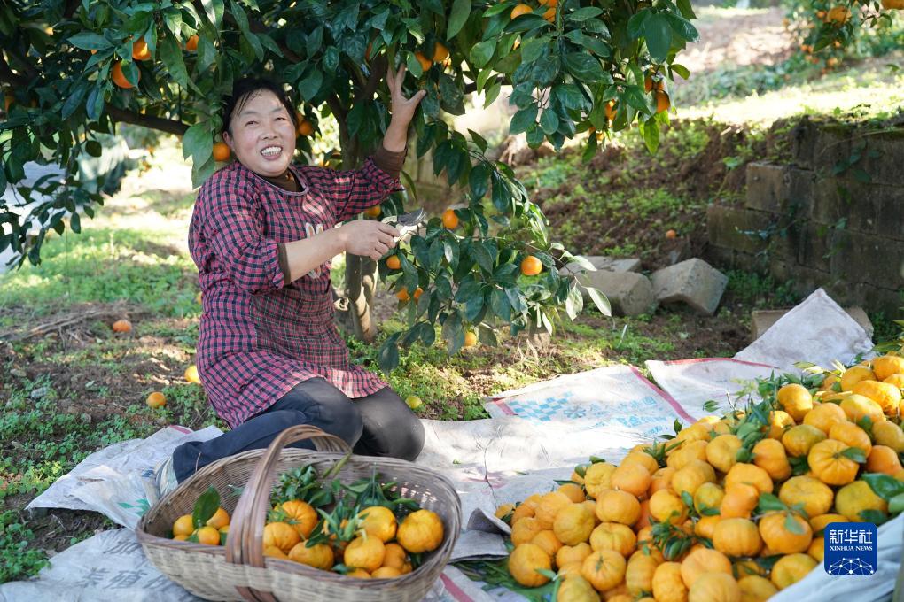 冬日,陜西省旬陽市6.4萬畝獅頭柑陸續成熟上市,金黃色的果實掛滿樹梢,處處是果農收獲采摘的景象。獅頭柑是旬陽市特色農產品,已獲得國家農產品地理標志登記保護。