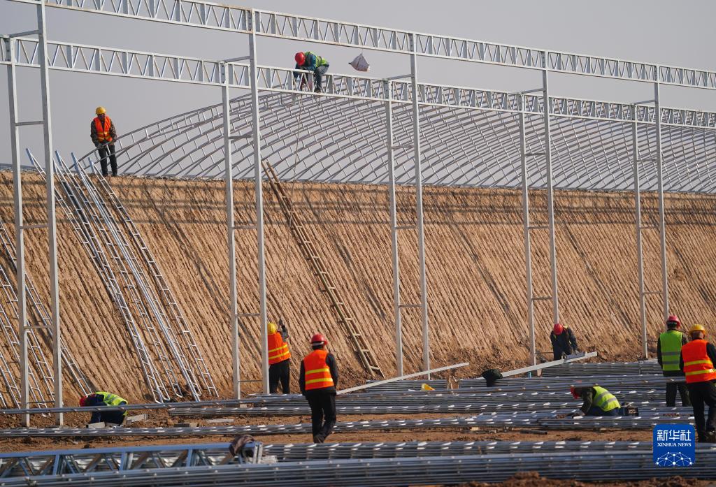 工人在進行饒陽縣農村產業融合發展示范園項目施工(11月20日攝)。