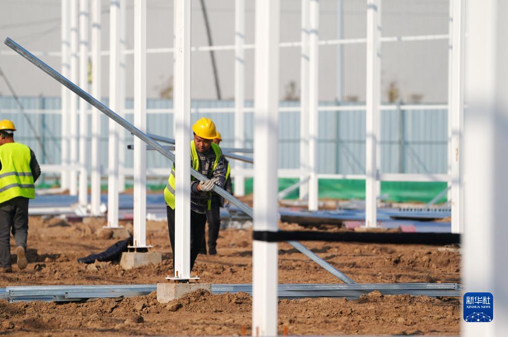 工人在進行饒陽縣農村產業融合發展示范園項目施工(11月20日攝)。