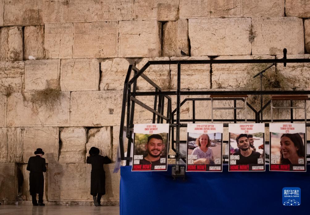 這是11月7日在耶路撒冷老城“哭墻”前拍攝的以色列被扣押人員海報。