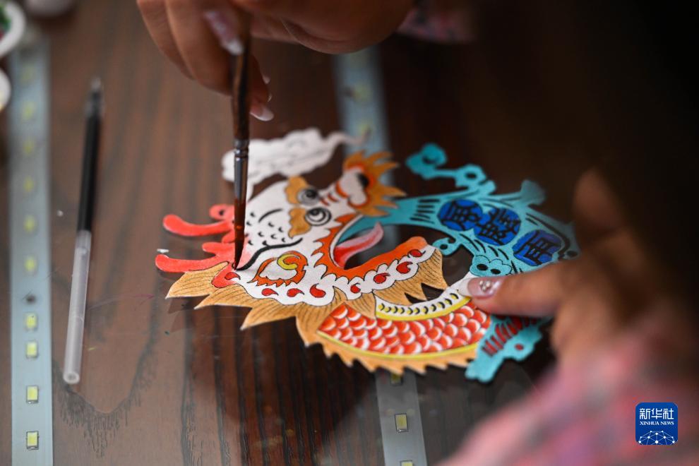 11月16日,在內蒙古阿拉善盟阿拉善左旗的馬鬃繞線蒙古族唐卡傳習所,一名學徒在制作蒙古族唐卡。