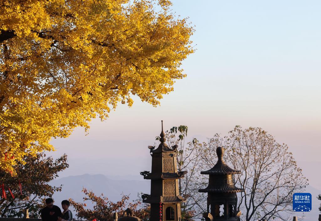 諸暨市店口鎮杭塢山頂的古銀杏樹葉金黃,吸引游人觀賞(11月21日攝)。