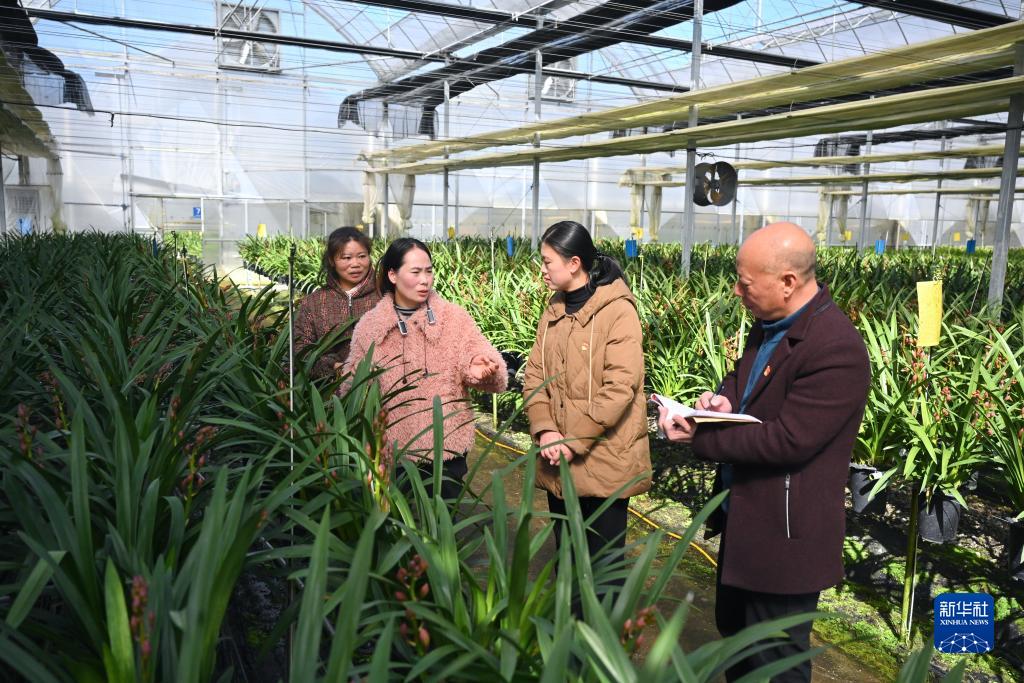 11月17日,在位于周寧縣浦源鎮的寧德向山蘭園植物科技有限公司花卉大棚內,浦源鎮黨委書記李丹舟(右二)帶領鄉村振興指導員(右一)向公司負責人了解企業經營情況。