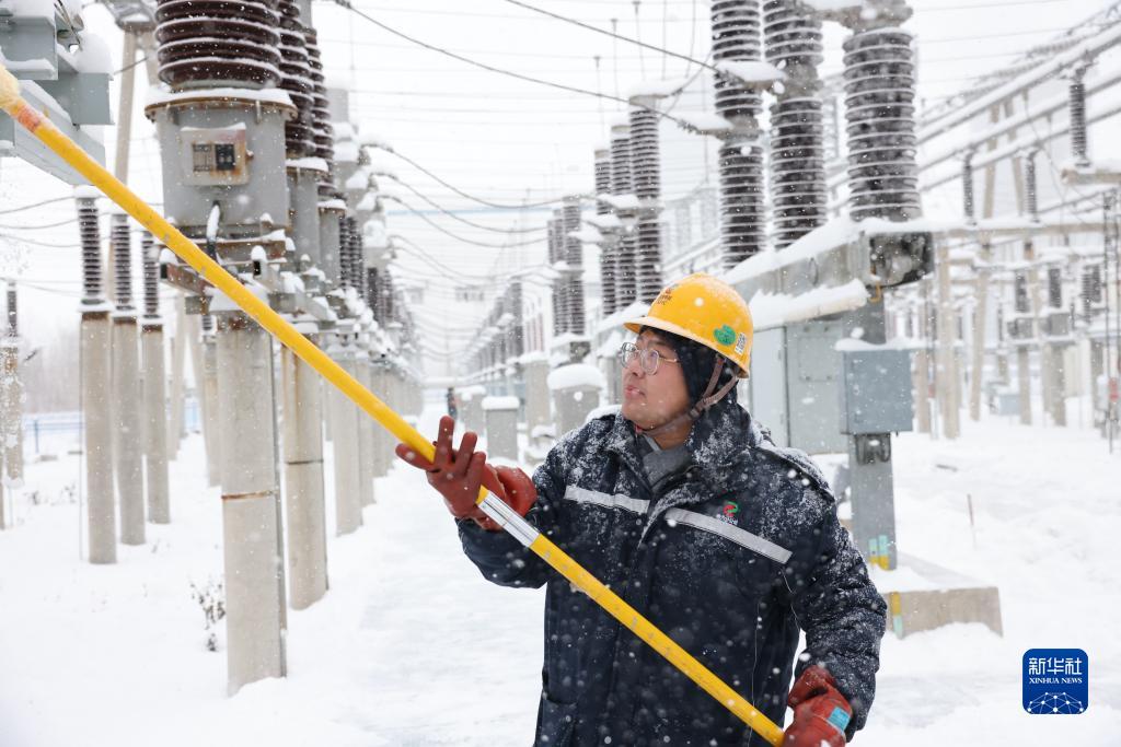 11月22日,國家電投內蒙古公司電力分公司職工在清掃絕緣瓷瓶。