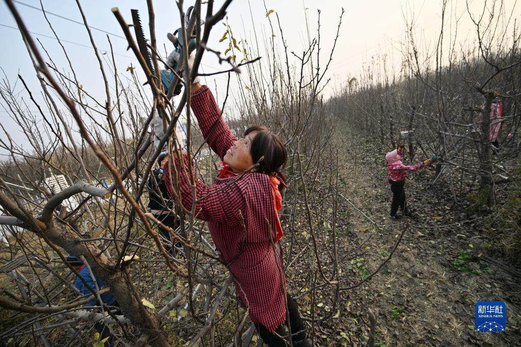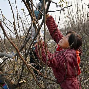 技術工人在威縣賀營鎮紅龍集村的梨園里剪枝(11月21日攝)。
