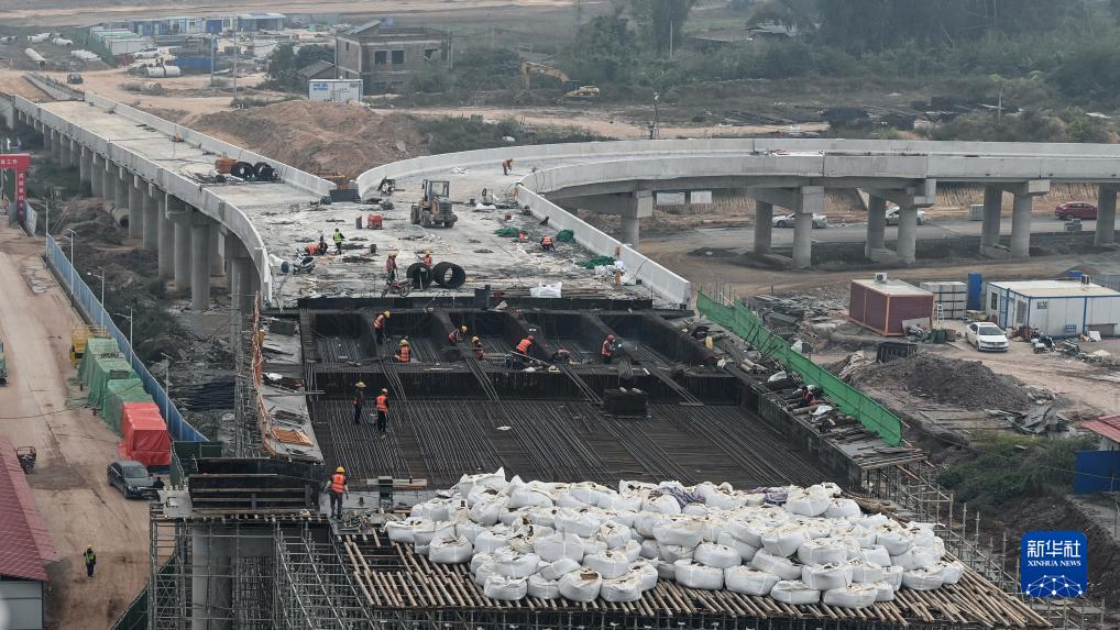 工人在鋪設玉林北站的進站道路(11月22日攝)。