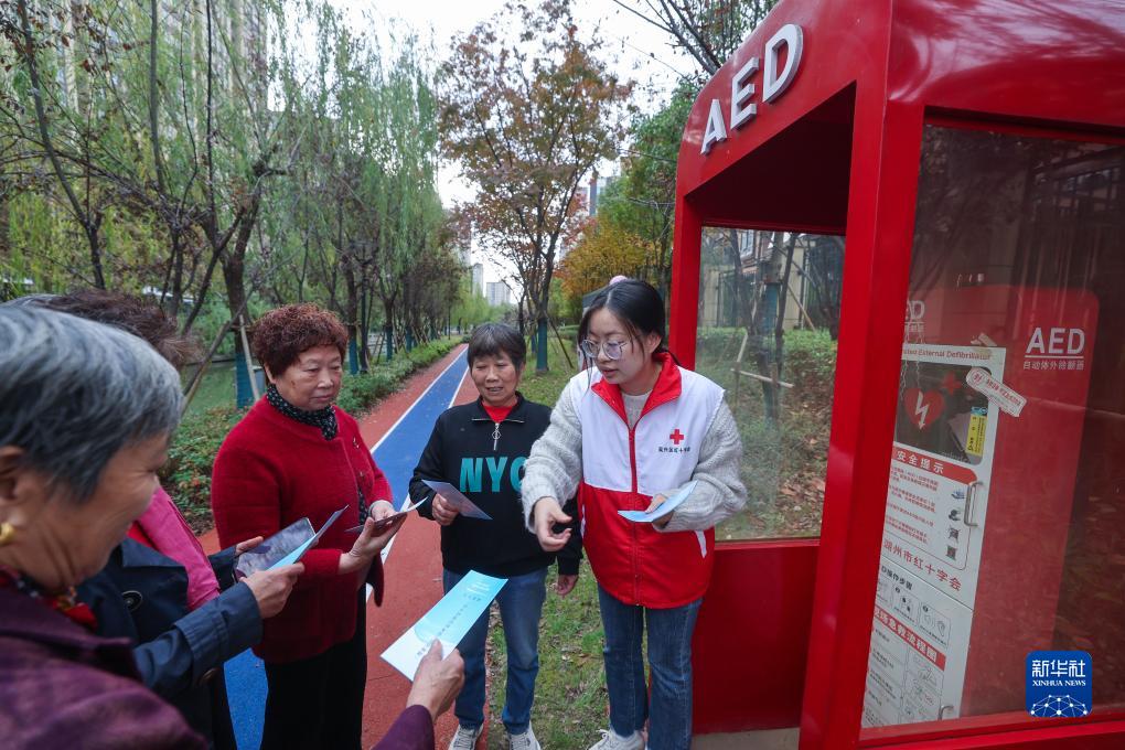 11月22日,龍泉街道祥和社區工作者在環河健康步道旁為居民進行醫保政策介紹。