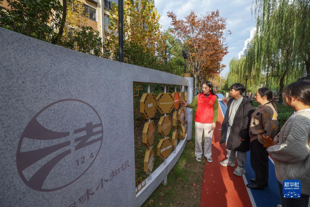 11月22日,龍泉街道祥和社區工作者在環河健康步道旁為居民進行普法宣傳。