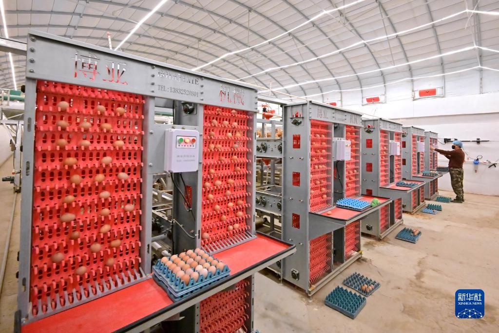 11月22日,工人在河北省唐山市蘆臺經濟技術開發區一家蛋雞養殖企業的車間工作。