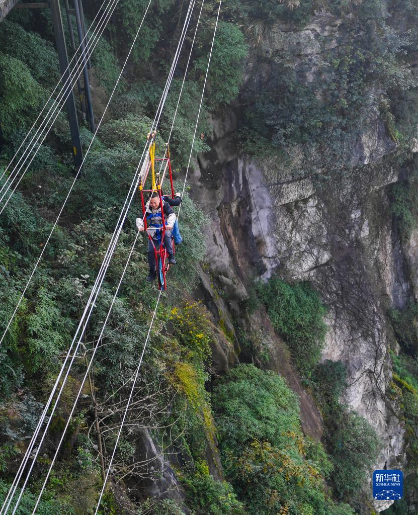 11月21日,游客在重慶市萬盛經開區奧陶紀景區體驗“懸崖自行車”游玩項目。