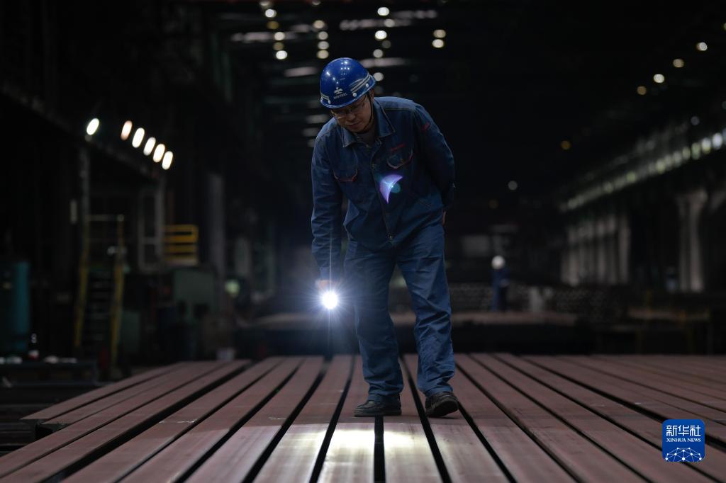 11月21日,在攀鋼釩軌梁廠,呂攀峰在檢查鋼軌成品底部表面質量。