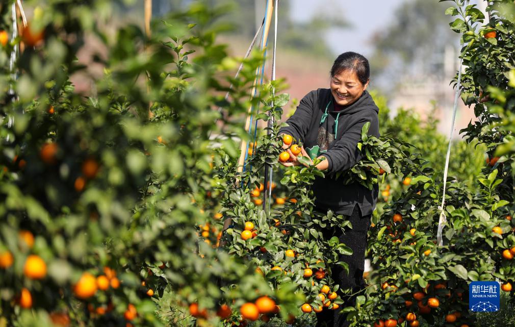 11月22日,在四川省宜賓市高縣羅場鎮陳村村,村民在果園里采摘柑橘。
