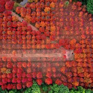 11月22日,游人在湖南張家界國家森林公園天子山游玩(無人機照片)。