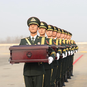 11月23日上午,中韓雙方在韓國仁川國際機場共同舉行在韓中國人民志愿軍烈士遺骸交接儀式。中韓雙方代表現場簽署交接書,確認交接25位在韓中國人民志愿軍烈士遺骸及相關遺物。