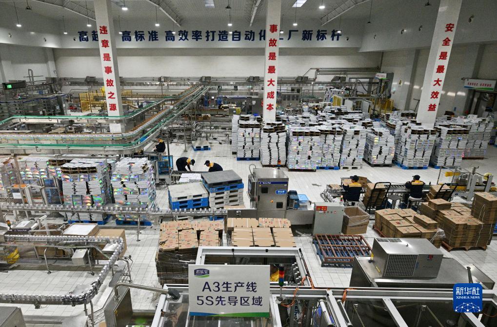 工作人員在威縣君樂寶乳業有限公司包裝車間工作(11月22日攝)。