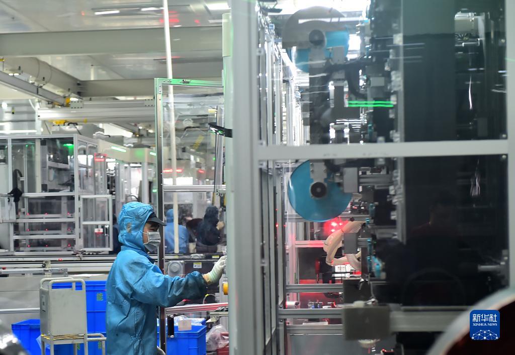 11月21日,在江西鷹潭耀寧新能源科技有限公司生產車間,技術工人在生產線上作業。