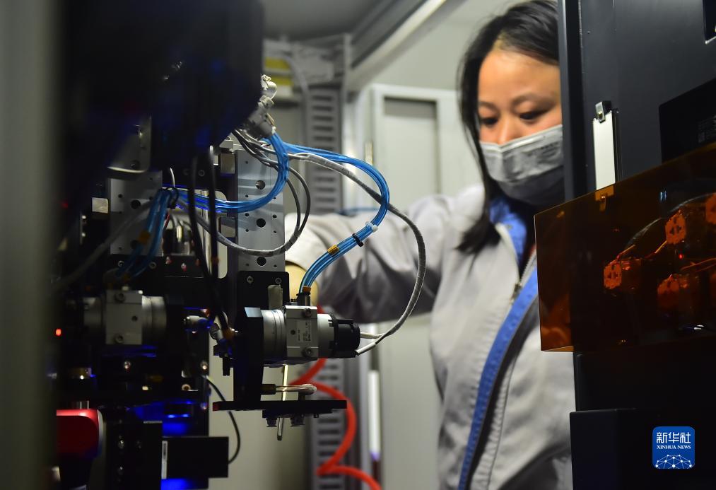 11月21日,在江西水晶光電科技有限公司生產車間,技術工人在生產線上作業。