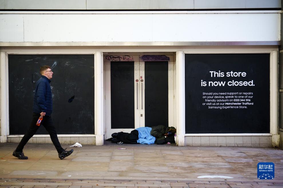11月22日,在英國曼徹斯特,一名無家可歸者躺在一家關閉的店鋪前。