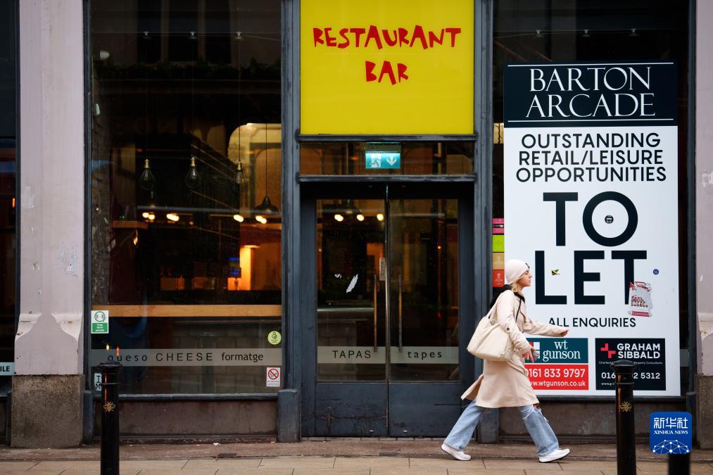 11月22日,一名女子走過英國曼徹斯特一家關閉的餐廳。