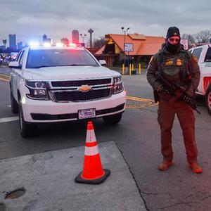 11月22日,警察在美加邊境彩虹橋口岸美國一側警戒。