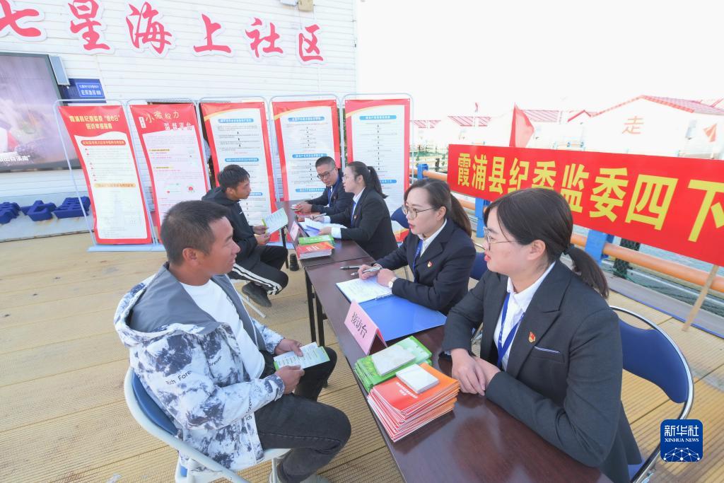福建省寧德市霞浦縣溪南鎮七星海域,碧波蕩漾,航道寬闊,疾速行駛的快艇激起陣陣浪花,兩側是一片片現代化的養殖漁排。走進七星海上社區,黨群服務中心、志愿服務站、海上綜治中心等設施一應俱全,工作人員正為海上居民提供法律咨詢、信訪接待、矛盾化解、水產養殖技術咨詢等服務。