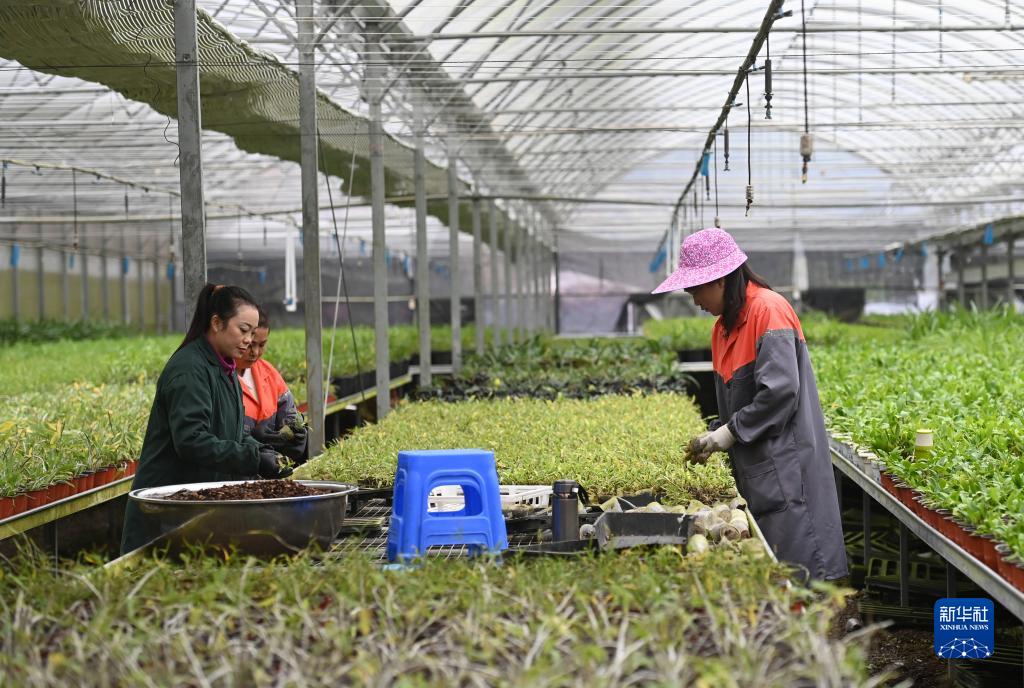 11月22日,在廣西雅長蘭科植物國家級自然保護區,工人在栽種蘭科植物。