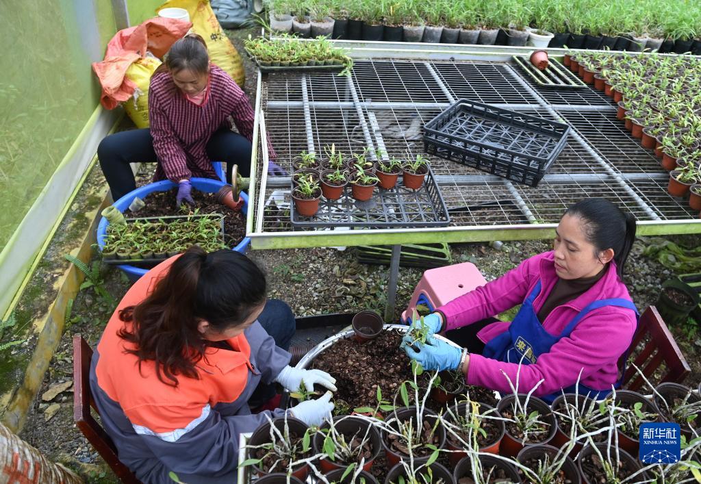 11月22日,在廣西雅長蘭科植物國家級自然保護區,工人在栽種蘭科植物。