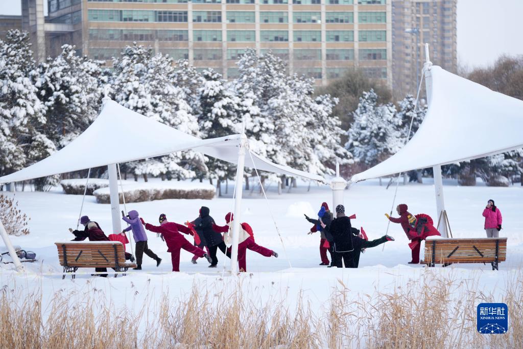 11月23日,在哈爾濱市湘江公園,市民在健身。
