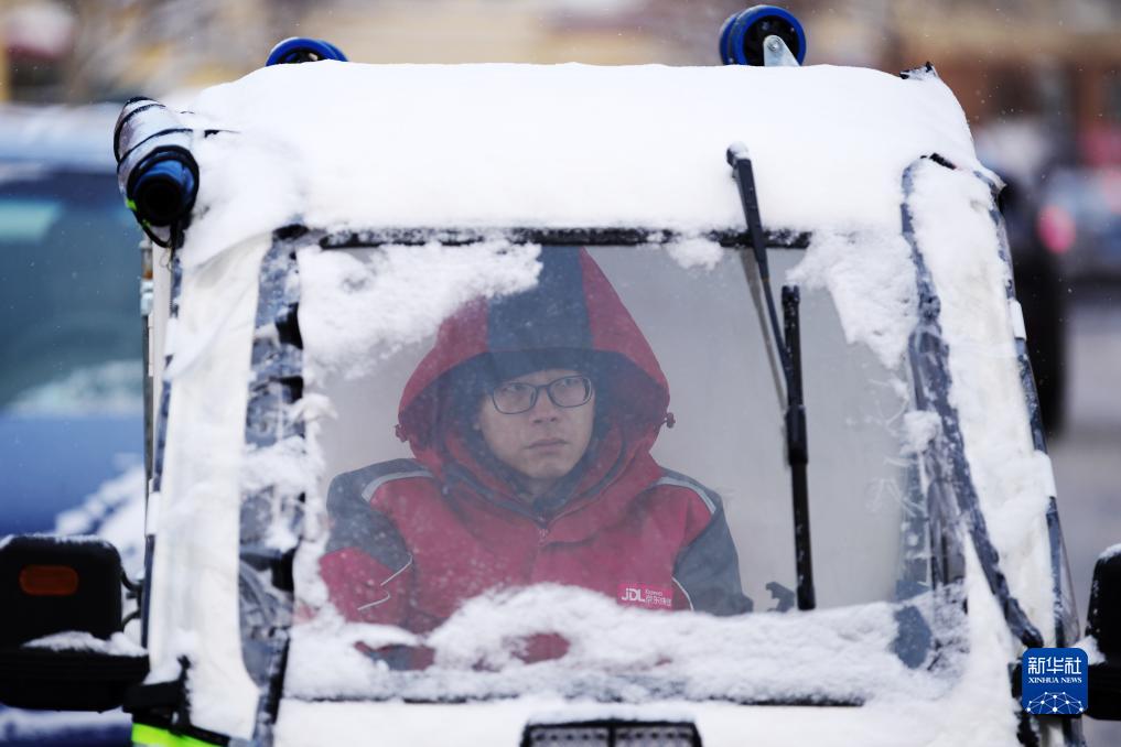 11月23日,在哈爾濱市,快遞員駕駛三輪車在送快遞。