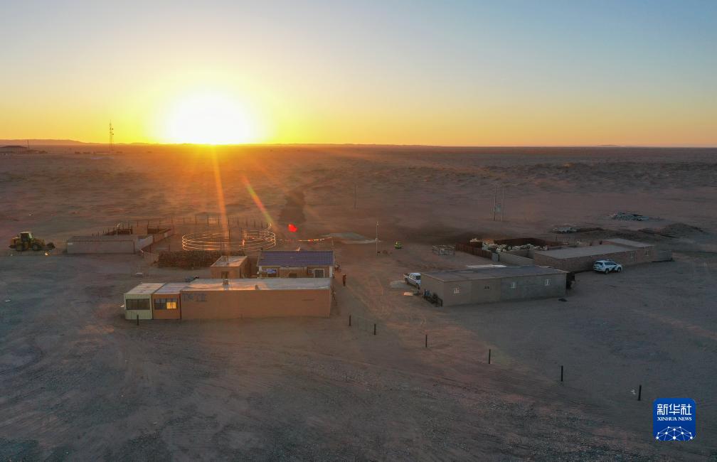 這是內蒙古阿拉善左旗烏力吉蘇木溫都爾毛道嘎查牧民朝勒門格爾勒的家(11月17日攝,無人機照片)。