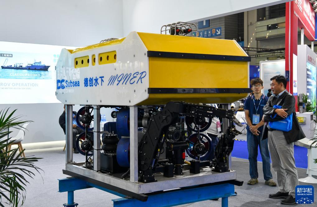 11月23日,觀眾在展覽現場了解大型作業級水下機器人。