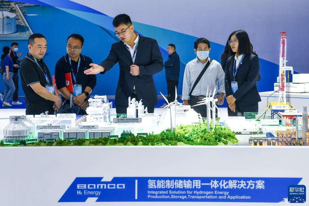 11月23日,觀眾在中國石油展臺了解氫能制儲輸用一體化解決方案。