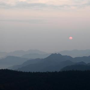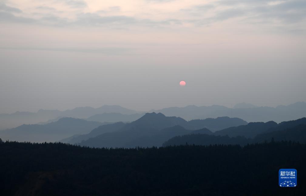 當日清晨,廣西樂業縣紅日初升,晨霧中的群山充滿詩情畫意。