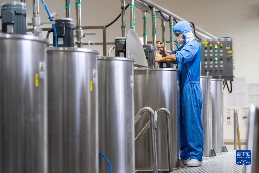 11月23日,在鹽津鋪子瀏陽生產基地,工人在攪拌食品原料。